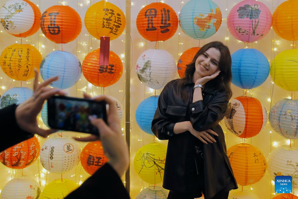 People attend an event celebrating the Lantern Festival at the Chinese Cultural Center in Bucharest, Romania, Feb. 23, 2024. (Photo by Cristian Cristel/Xinhua)