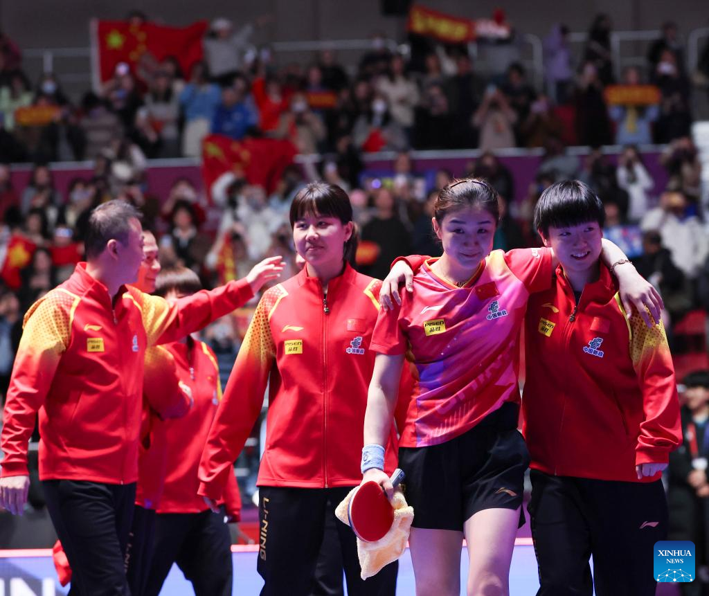 In the two sides' fifth straight head-to-head final in the tournament dating back to 2014, the trio of Sun Yingsha, Chen Meng and Wang Yidi helped China emerge victorious again to stand on top of the podium.