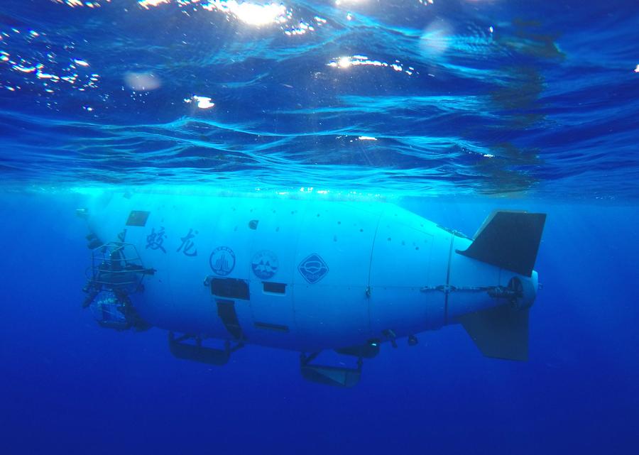 China's manned submersible "Jiaolong" is despatched on its fifth, and last, dive of the year in the Mariana Trench, June 1, 2017. (Xinhua/Liu Shiping)