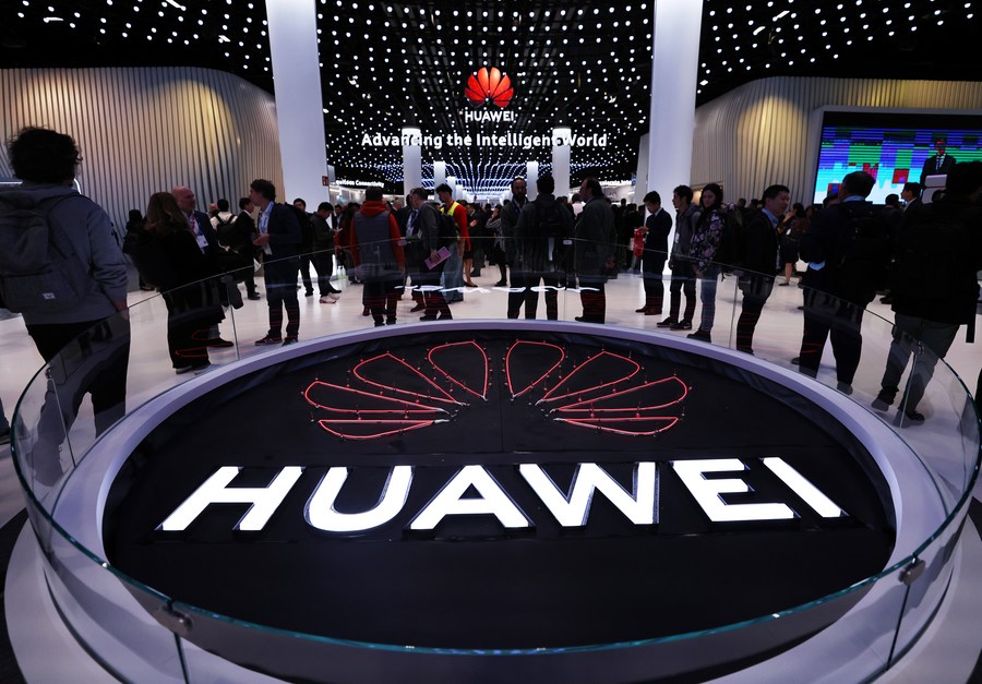 People visit the Huawei pavilion at the 2024 edition of the Mobile World Congress (MWC) in Barcelona, Spain, Feb. 26, 2024. (Xinhua/Gao Jing)