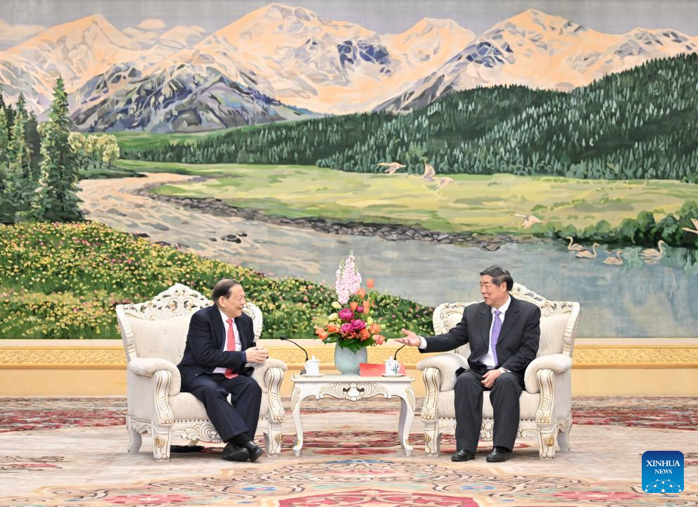 Chinese Vice Premier He Lifeng, also a member of the Political Bureau of the Communist Party of China Central Committee, meets with Sukanto Tanoto, chairman of Royal Golden Eagle (RGE) Group, at the Great Hall of the People in Beijing, capital of China, Feb. 26, 2024. (Xinhua/Yue Yuewei)