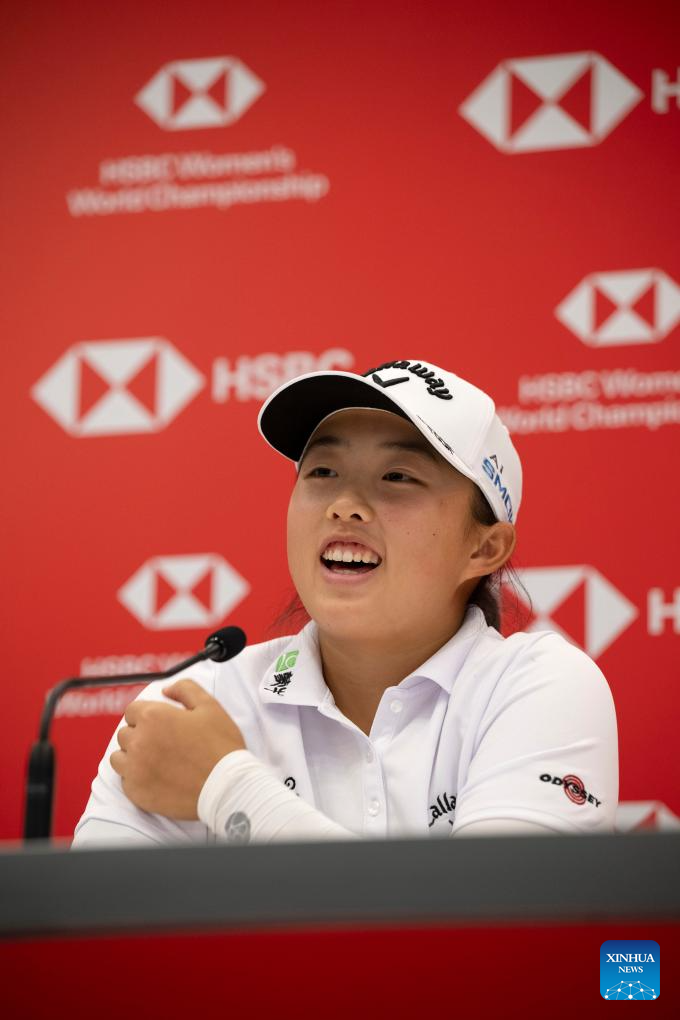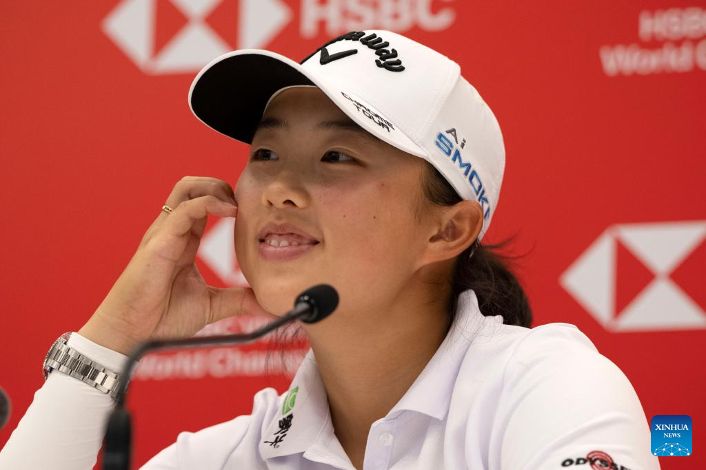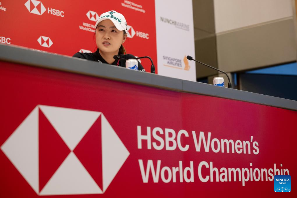 Yin Ruoning of China attends the HSBC Women's World Championship pre-tournament press conference held at the Singapore's Sentosa Golf Club on Feb. 27, 2024. (Photo by Then Chih Wey/Xinhua)