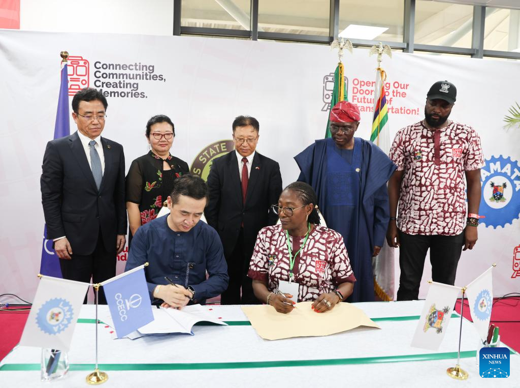 This photo taken on Feb. 29, 2024 shows a contract signing ceremony of the second phase of Lagos Rail Mass Transit Red Line in Lagos, Nigeria. The first phase of a Chinese-built state-of-the-art light rail project in Nigeria's southwestern state of Lagos was inaugurated Thursday by President Bola Tinubu, opening a new chapter in addressing the challenges of traffic congestion and commuting delays that have long plagued the country's economic powerhouse.