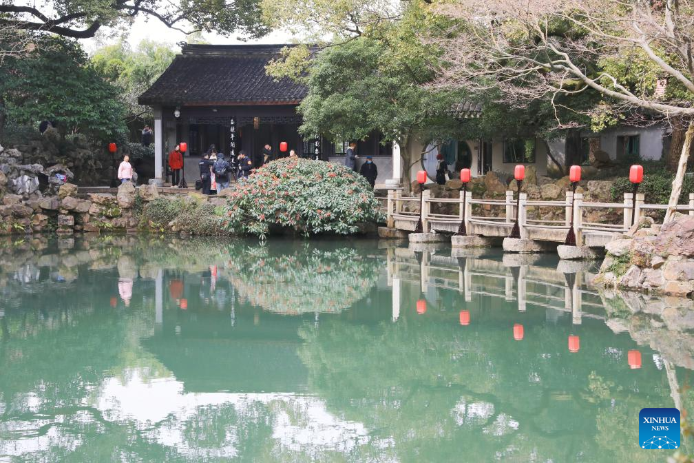 Tourists visit the Jichang Garden in early spring in Wuxi, east China's Jiangsu Province, March 1, 2024. The Jichang Garden in Wuxi is a classical Chinese garden built in the 16th century, best known for its elegant design and tranquil atmosphere. (Xinhua/Mao Jun)