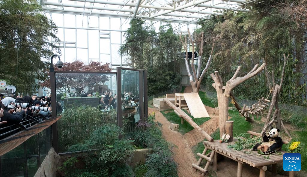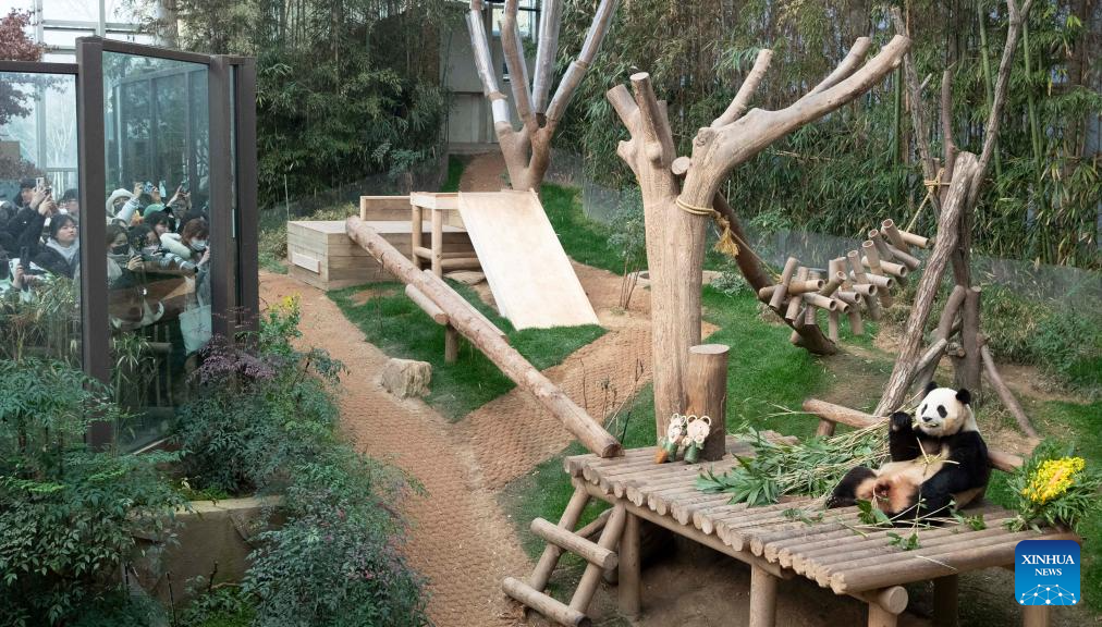 People watch giant panda Fu Bao at Everland theme park in Yongin, South Korea, March 3, 2024. Fu Bao is scheduled to return to China in April. (Xinhua/Yao Qilin)