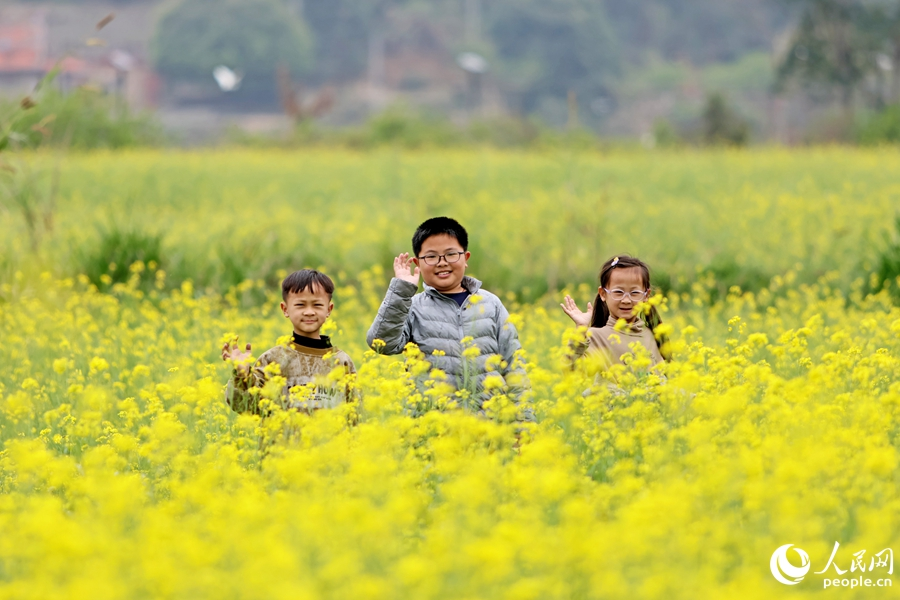 Children have fun at a rapeseed field in Shanchong village, Changtai district, Zhangzhou city, southeast China's Fujian Province. (People's Daily Online/Li Changqian)