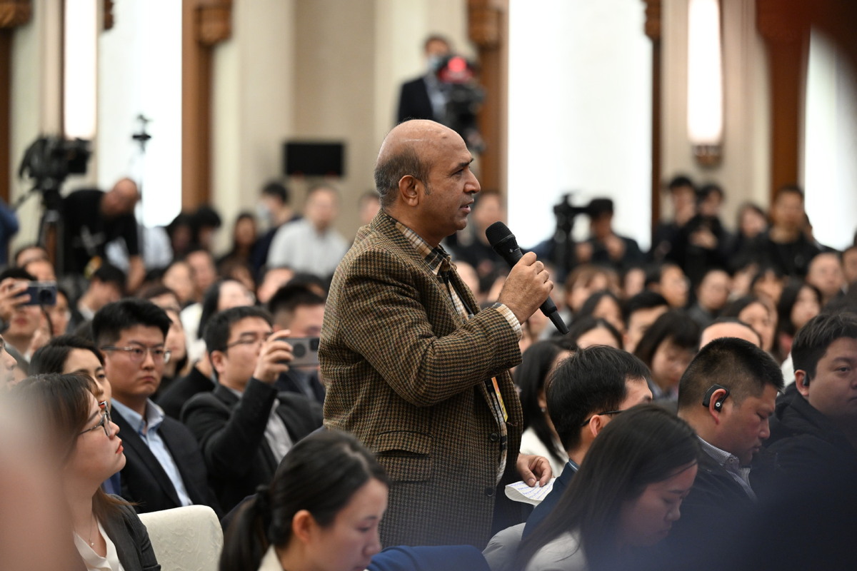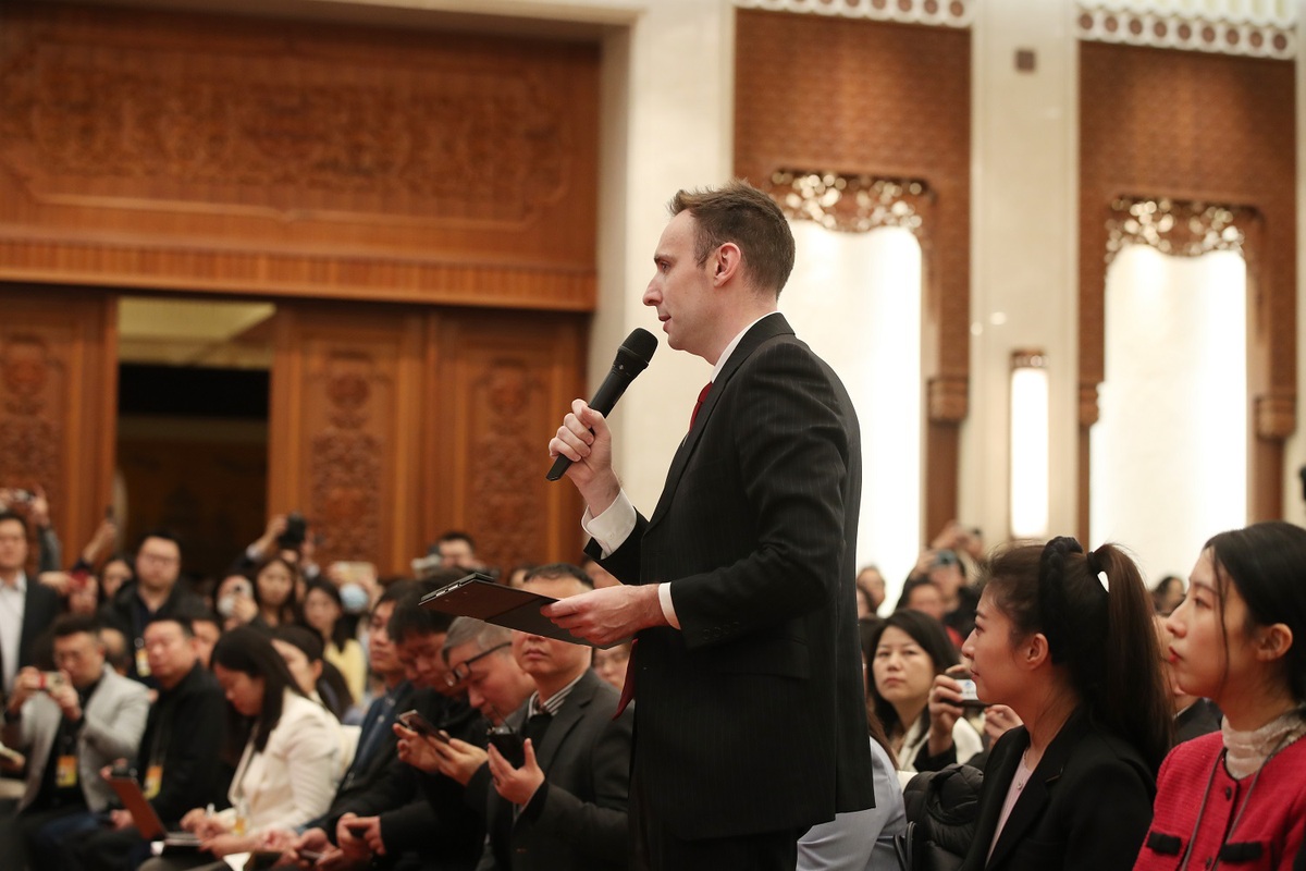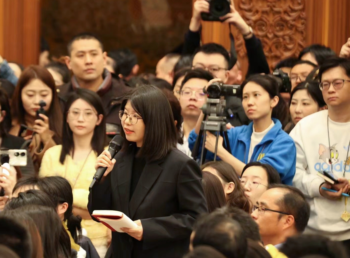 A journalist asks a question at a news conference of the second session of the 14th National Committee of the Chinese People's Political Consultative Conference at the Great Hall of the People in Beijing, March 3, 2024. [Photo/Xinhua]
