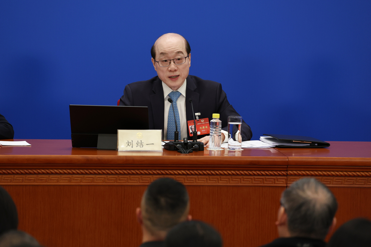 Liu Jieyi, spokesperson for the second session of the 14th Chinese People's Political Consultative Conference National Committee, attends a news conference at the Great Hall of the People in Beijing, March 3, 2024. [Photo by Zou Hong/chinadaily.com.cn]
