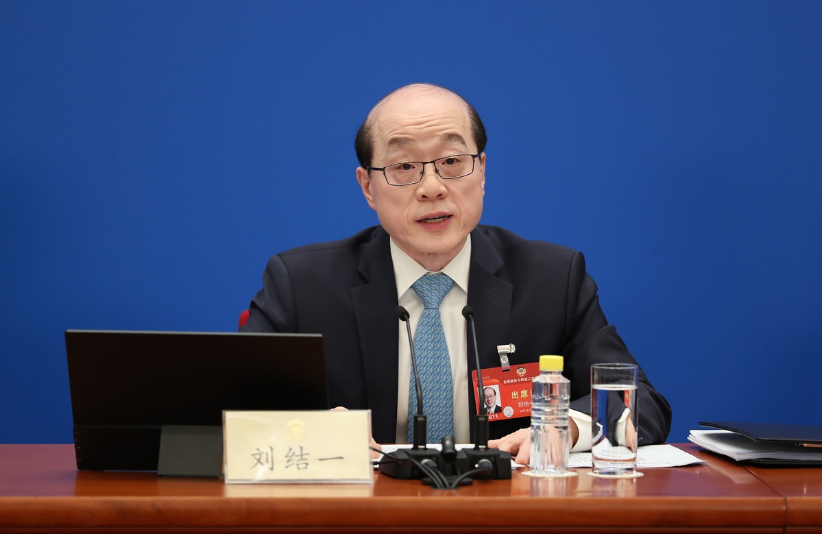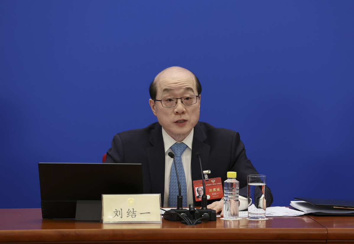 Liu Jieyi, spokesperson for the second session of the 14th Chinese People's Political Consultative Conference National Committee, attends a news conference at the Great Hall of the People in Beijing, March 3, 2024. [Photo/Xinhua]