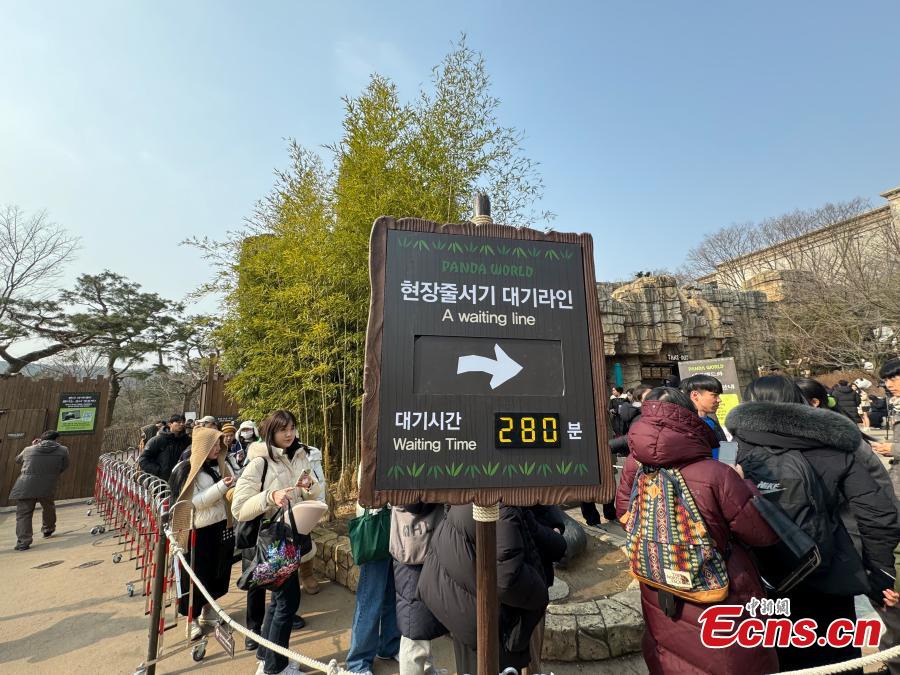 Visitors queue to view Fu Bao, the first giant panda born in South Korea in 2020, at Everland theme park in Yongin, South Korea, March 3, 2024. (Photo: China News Service/Wang Gang)