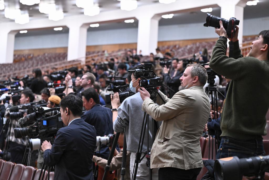Journalists work at the opening meeting of the second session of the 14th National Committee of the Chinese People's Political Consultative Conference (CPPCC) at the Great Hall of the People in Beijing, capital of China, March 4, 2024. (Xinhua/Jin Liwang)