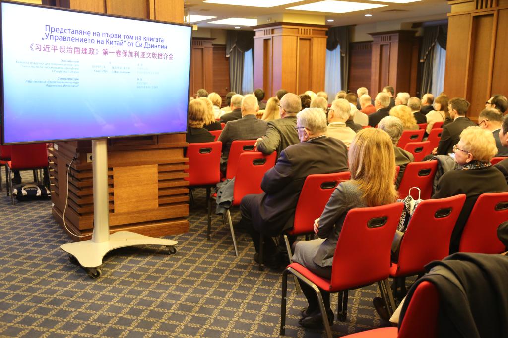 This photo taken on March 4, 2024 shows the promotional event for the Bulgarian edition of the first volume of "Xi Jinping: The Governance of China" in Sofia, Bulgaria. (Xinhua/Lin Hao)