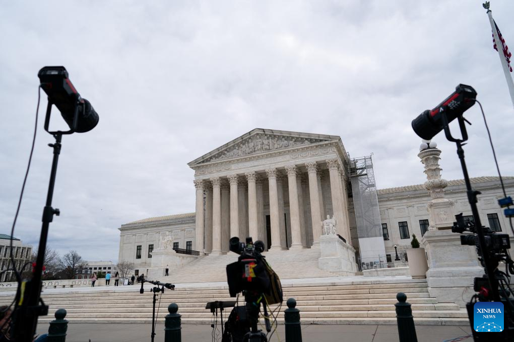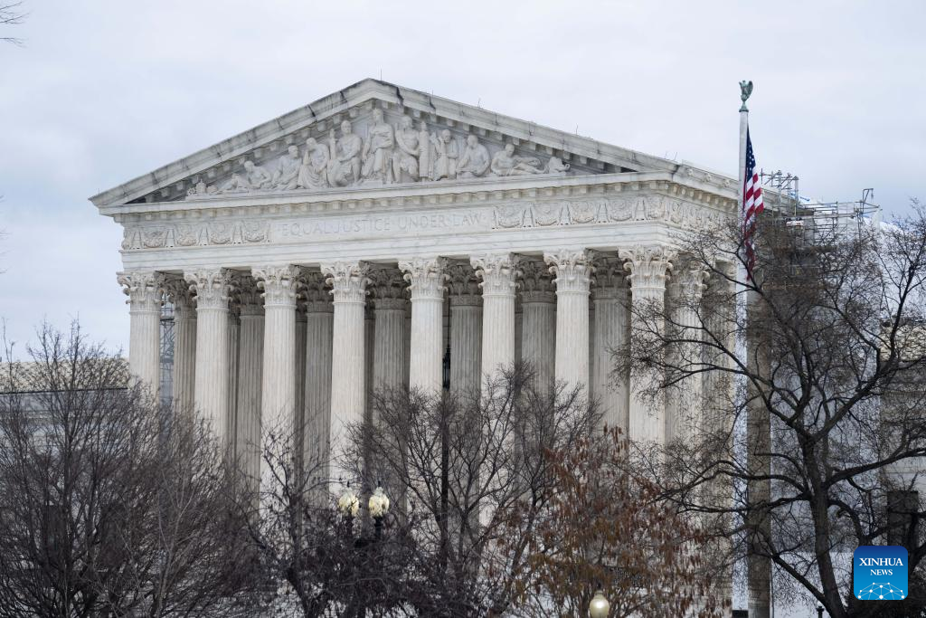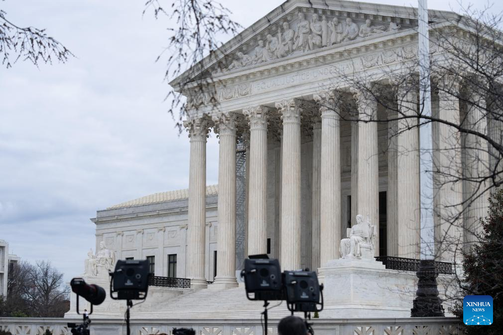 Photo taken on March 4, 2024 shows the U.S. Supreme Court in Washington, D.C., the United States. U.S. Supreme Court on Monday unanimously ruled that former President Donald Trump can remain on the primary ballot in Colorado, rejecting the state's disqualification and potentially setting national wide guidelines. (Xinhua/Liu Jie)