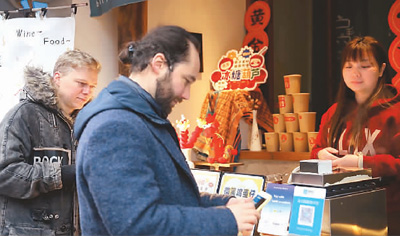 Alipay, one of China's major payment apps, has allowed foreign tourists in China to pay with their overseas bank cards via the app or use their own home e-wallets by scanning Alipay QR codes. During the Spring Festival holiday, spending by foreign tourists in China using the app and their home e-wallets by scanning Alipay QR codes surged 500 percent and 32 times year on year, respectively.