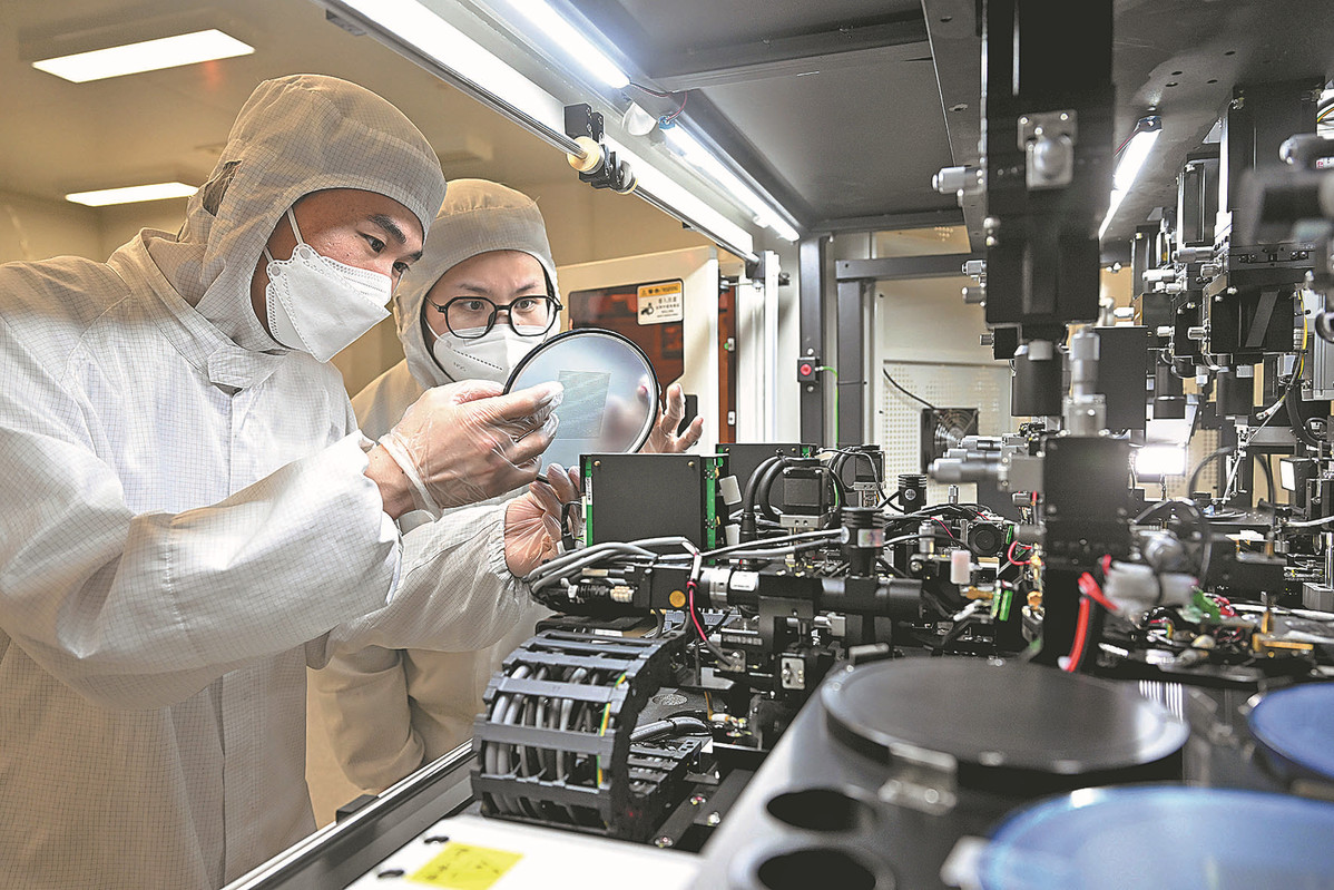 Workers test chips at an electronics factory in Luquan district of Shijiazhuang, Hebei province, last month. CHINA DAILY