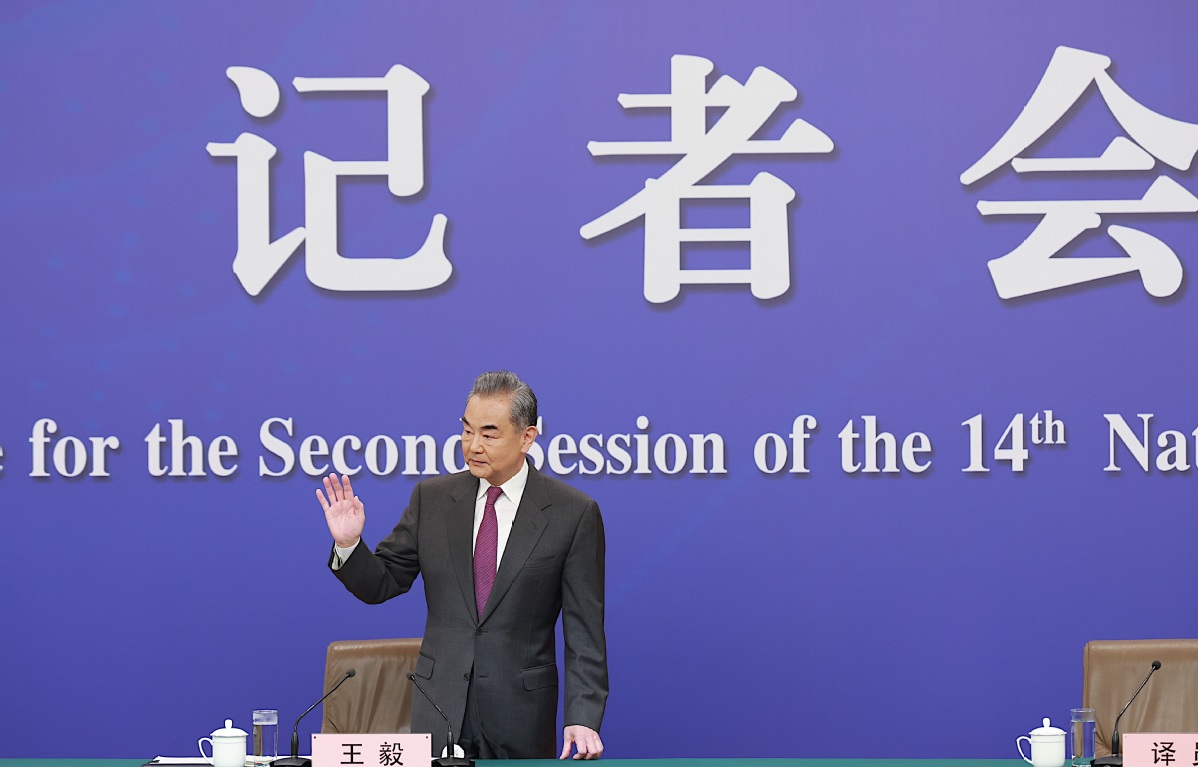 Foreign Minister Wang Yi, also member of the Political Bureau of the Communist Party of China Central Committee, answers questions about the country's foreign policy and diplomatic relations at a press conference on Thursday during the the second session of the 14th National People's Congress, China's top legislature.