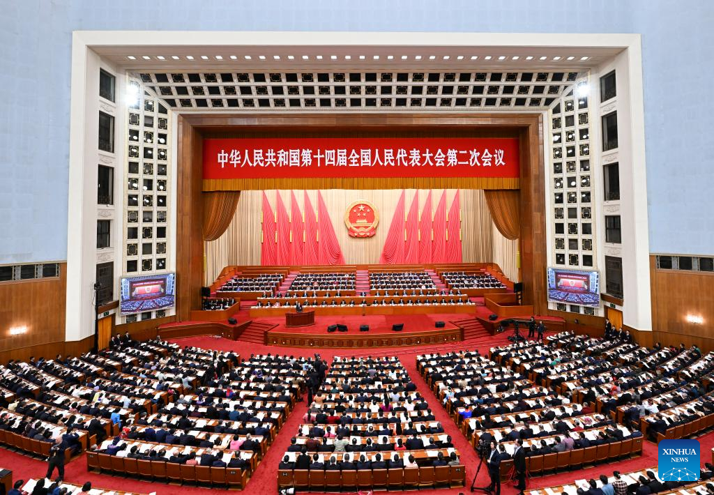 The second plenary meeting of the second session of the 14th National People's Congress (NPC) is held at the Great Hall of the People in Beijing, capital of China, March 8, 2024. (Xinhua/Liu Xu)
