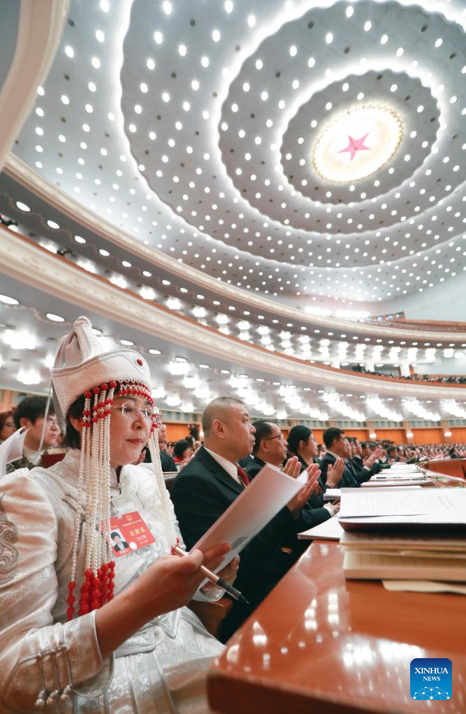 Deputies to the 14th National People's Congress (NPC) attend the second plenary meeting of the second session of the 14th NPC at the Great Hall of the People in Beijing, capital of China, March 8, 2024. (Xinhua/Liu Weibing)