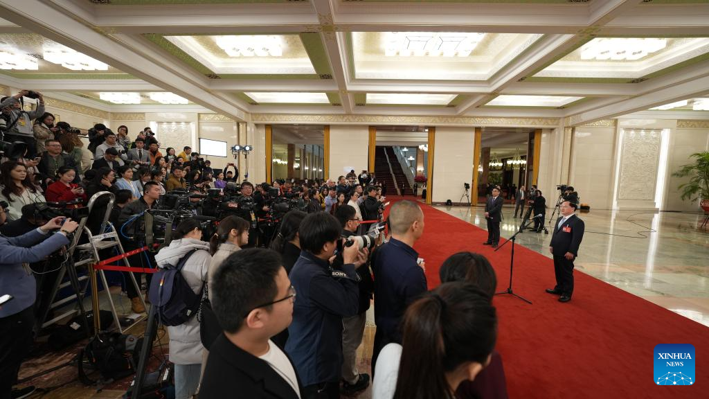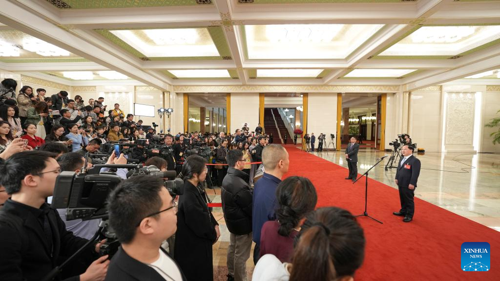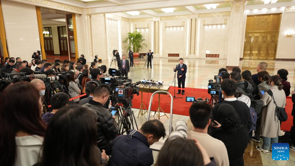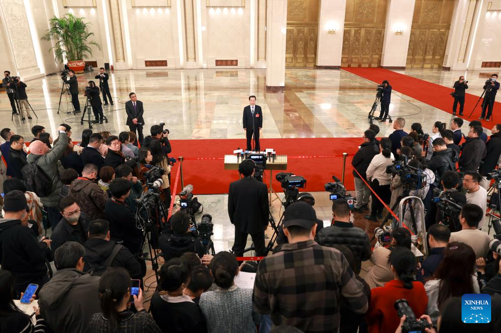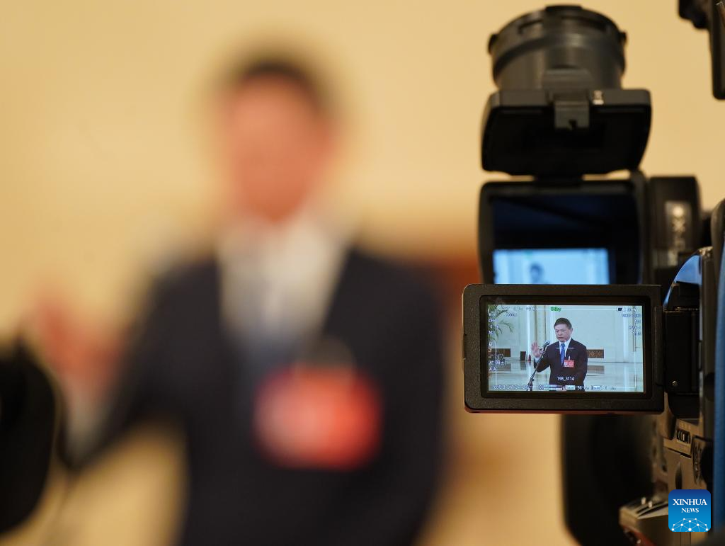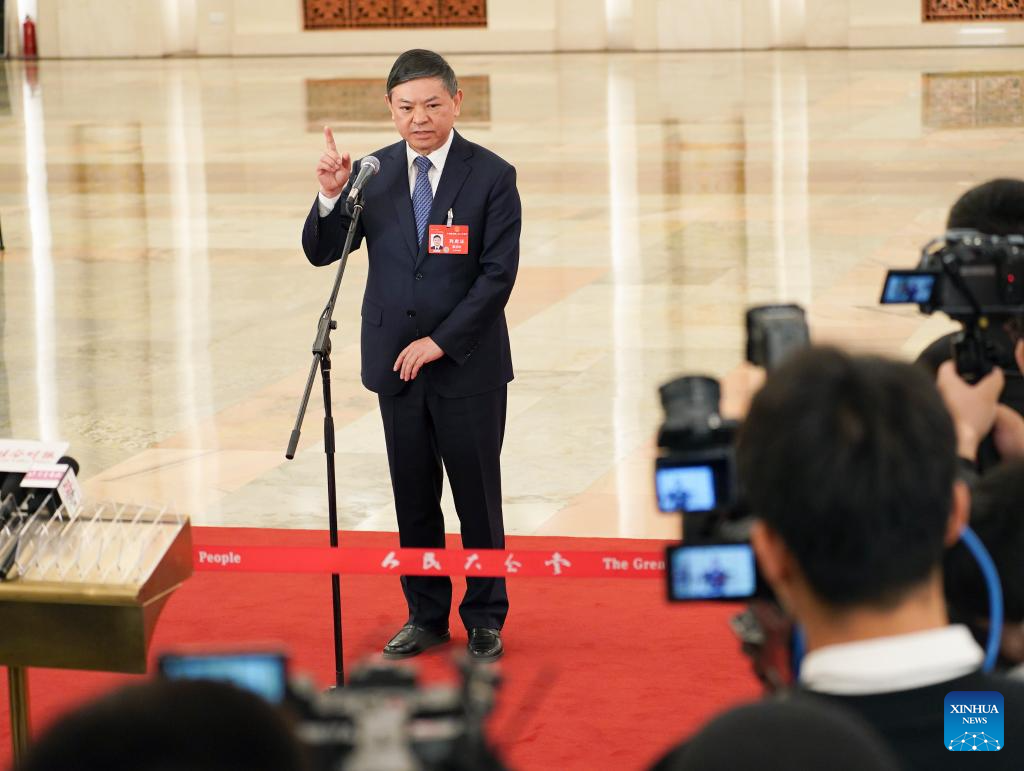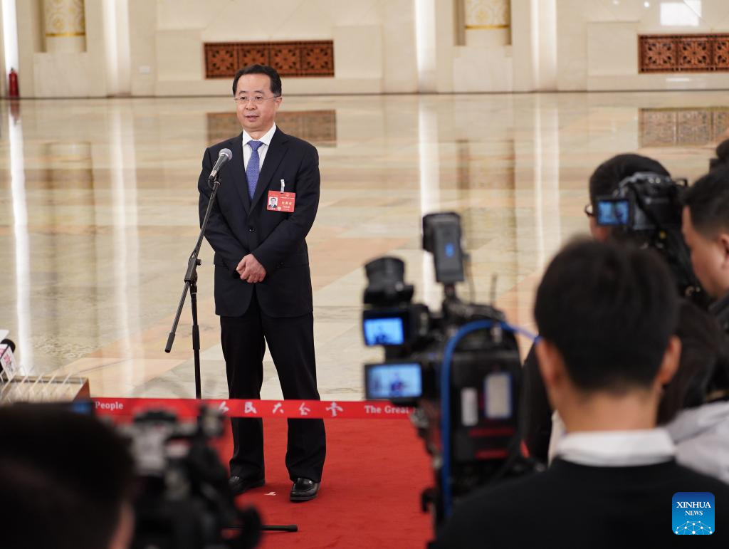 Head of the State Administration for Market Regulation Luo Wen gives an interview after the second plenary meeting of the second session of the 14th National People's Congress (NPC) at the Great Hall of the People in Beijing, capital of China, March 8, 2024. (Xinhua/Mu Yu)