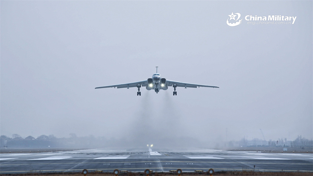 An H-6 bomber attached to an aviation regiment with the air force under PLA Central Military Command takes off during a round-the-clock penetrating strike training exercise. The exercise was held recently under complex weather conditions to temper the troops' combat capability. (eng.chinamil.com.cn/Photo by Yang-Tian Xingyu)