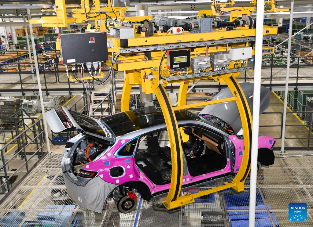 This photo taken on June 27, 2022 shows a vehicle being assembled at a smart factory of Chinese vehicle manufacturer Seres Group in Liangjiang New Area, southwest China's Chongqing Municipality. (Xinhua/Wang Quanchao)