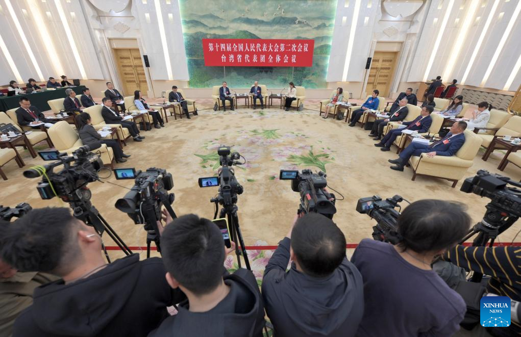 A group meeting of deputies from the Taiwan delegation is held at the second session of the 14th National People's Congress (NPC) in Beijing, capital of China, March 9, 2024. (Xinhua/Cai Yang)
