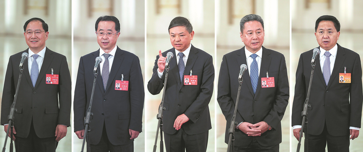 Four ministers and a top regulator met the media after the plenary meeting of the National People's Congress at the Great Hall of the People in Beijing on Friday.