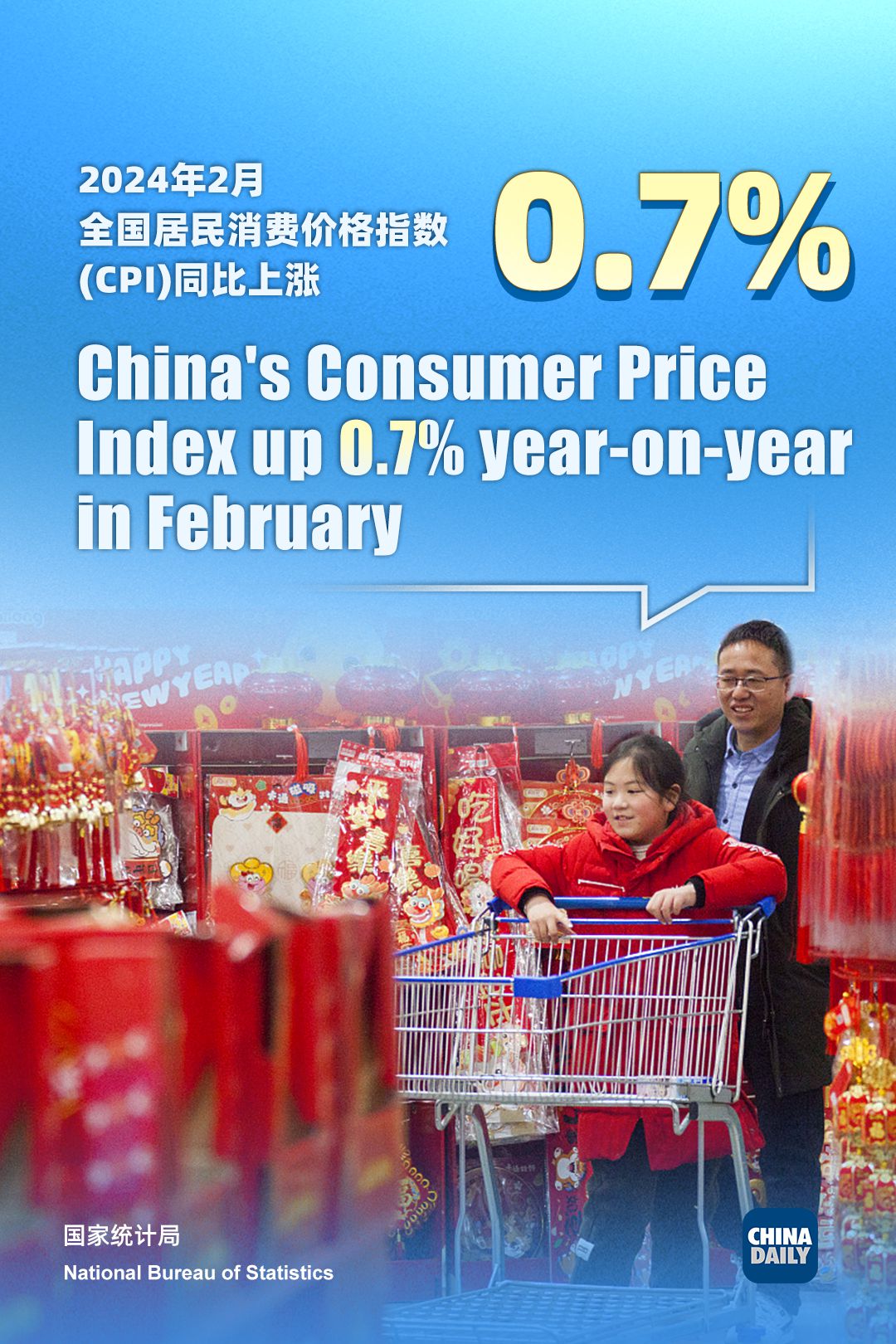 The country's consumer price index, a main gauge of inflation, rose by 0.7 percent year-on-year in February after a 0.8 percent decline in January, the National Bureau of Statistics said.