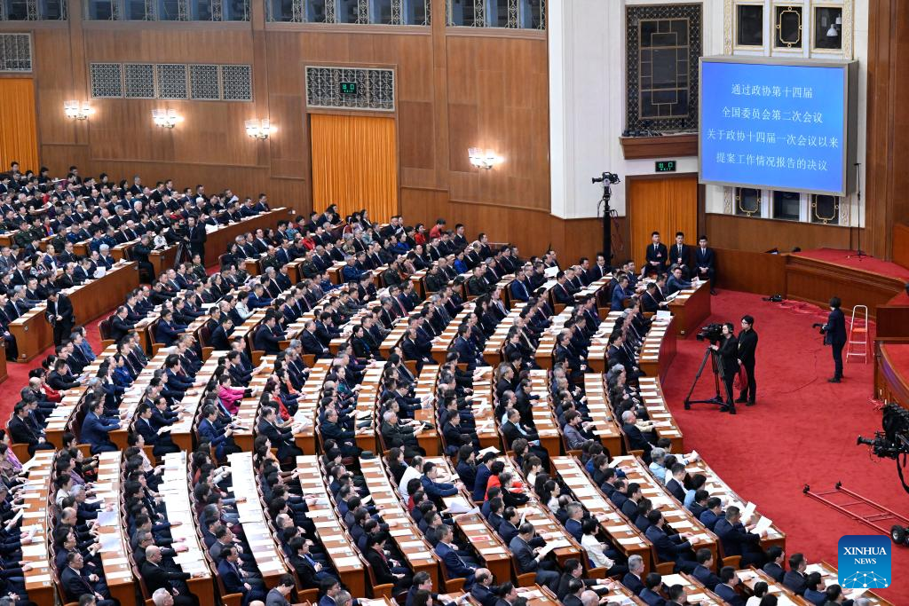The closing meeting of the second session of the 14th National Committee of the Chinese People's Political Consultative Conference (CPPCC) is held at the Great Hall of the People in Beijing, capital of China, March 10, 2024. (Xinhua/Li Xueren)