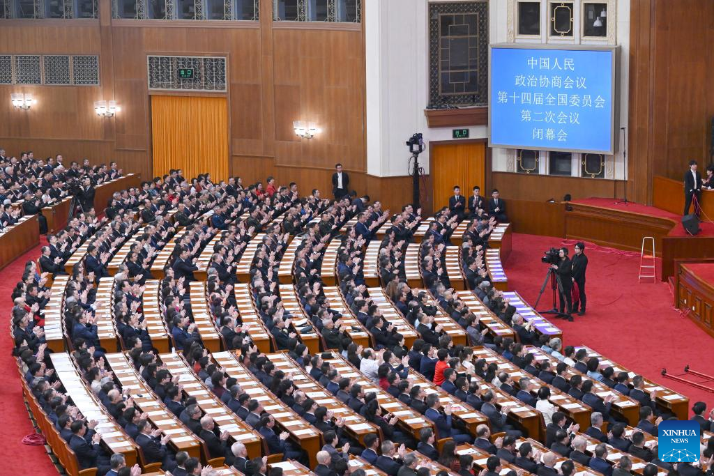 The closing meeting of the second session of the 14th National Committee of the Chinese People's Political Consultative Conference (CPPCC) is held at the Great Hall of the People in Beijing, capital of China, March 10, 2024. (Xinhua/Gao Jie)