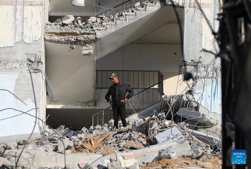 A Palestinian inspects destroyed buildings after intense airstrikes in the southern Gaza Strip city of Rafah, on March 9, 2024. The Palestinian death toll from ongoing Israeli attacks on the Gaza Strip has risen to 30,960 with 72,524 others wounded, the Hamas-run Health Ministry said in a press statement on Saturday. (Photo by Yasser Qudih/Xinhua)