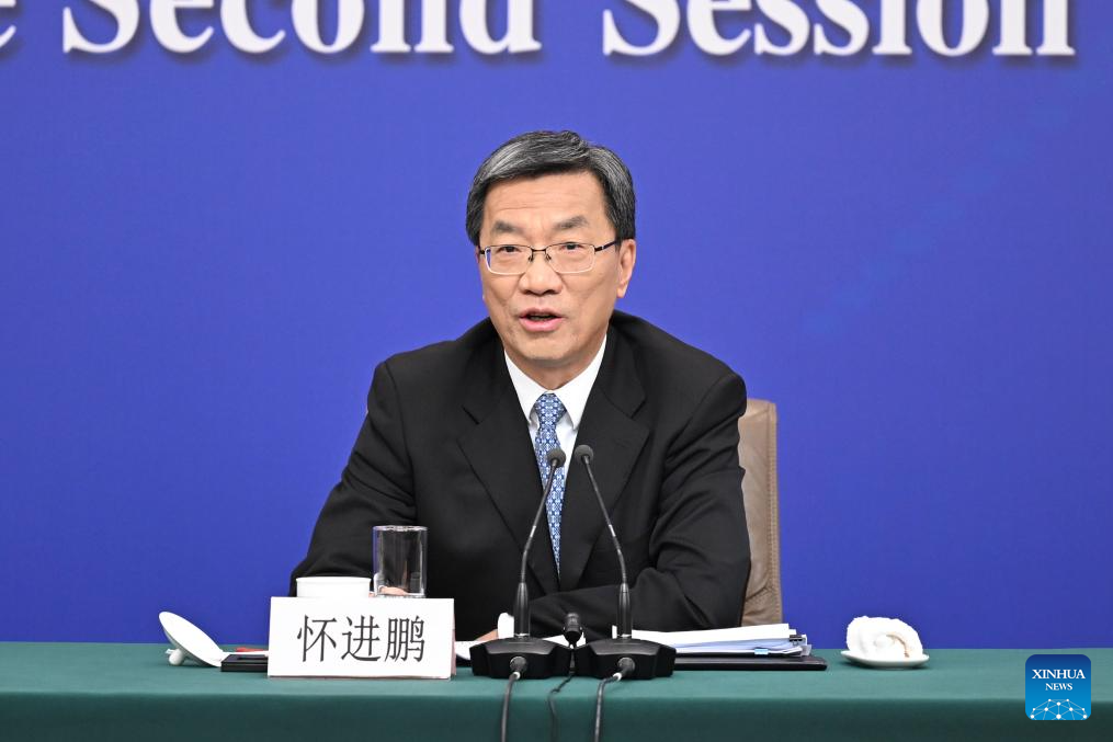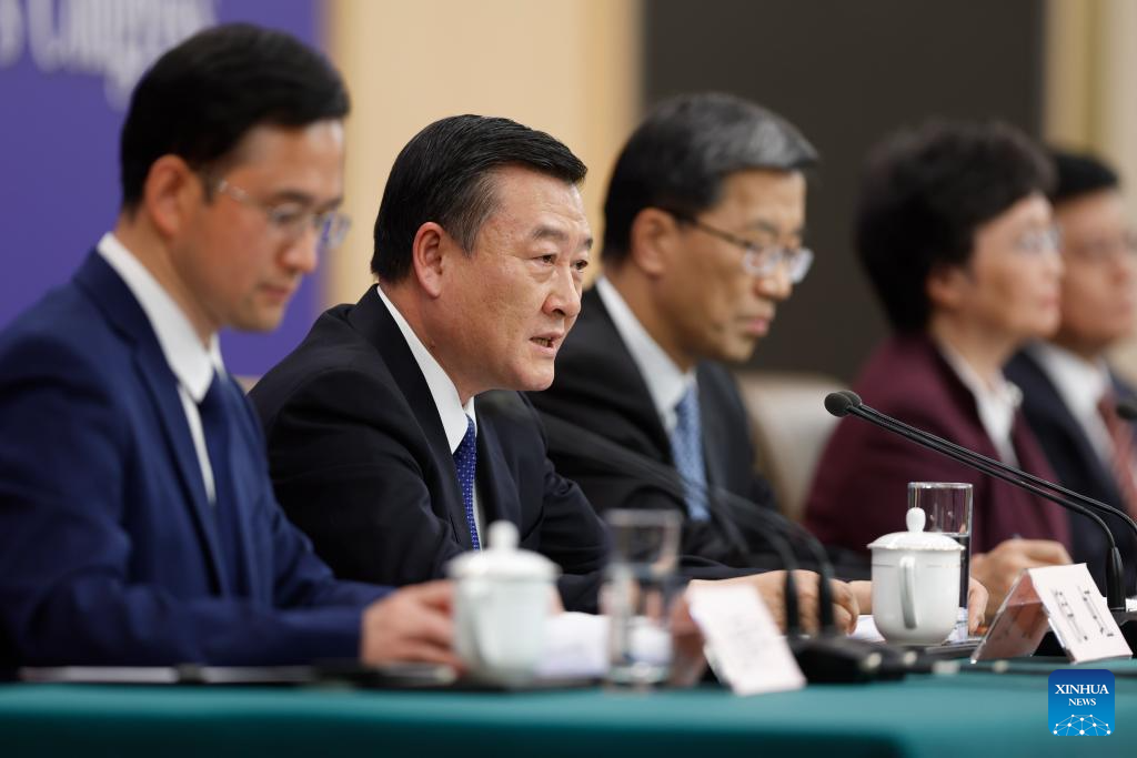 China's Minister of Housing and Urban-Rural Development Ni Hong speaks at a press conference on people's livelihood for the second session of the 14th National People's Congress (NPC) in Beijing, capital of China, March 9, 2024. China's Minister of Education Huai Jinpeng, Minister of Human Resources and Social Security Wang Xiaoping, and Chief of the National Disease Control and Prevention Administration Wang Hesheng also attended the press conference on Saturday. (Xinhua/Mu Yu)