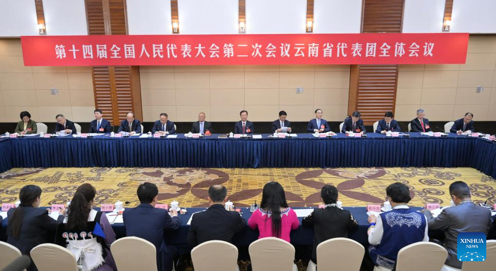 A group meeting of deputies from the delegation of Yunnan Province is held at the second session of the 14th National People's Congress (NPC) in Beijing, capital of China, March 10, 2024. (Xinhua/Wang Jingqiang)