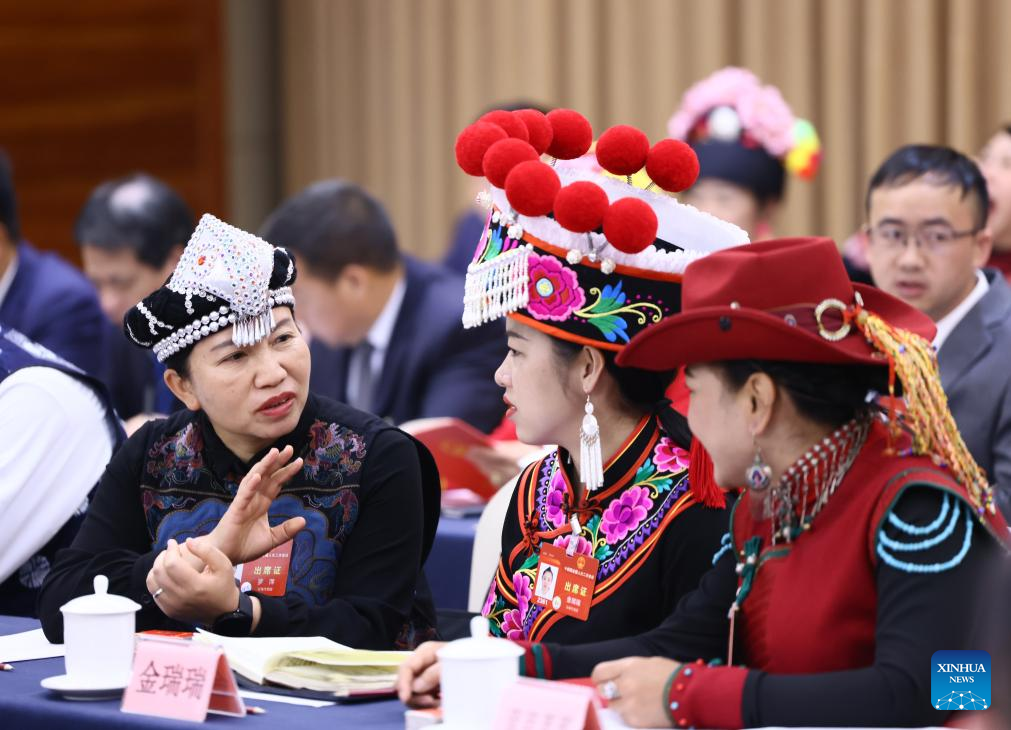 A group meeting of deputies from the delegation of Yunnan Province is held at the second session of the 14th National People's Congress (NPC) in Beijing, capital of China, March 10, 2024. (Xinhua/Cai Yang)