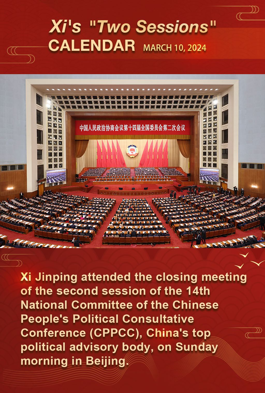 Xi's "Two Sessions" Calendar: Xi attends closing meeting of top political advisory body's annual session