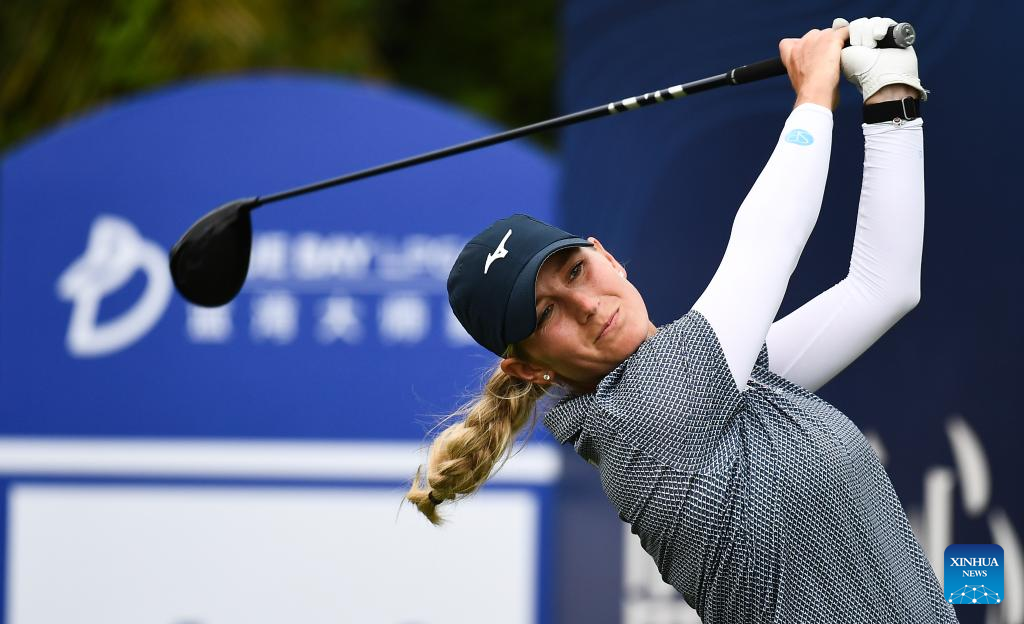 Sarah Schmelzel of the United States plays a shot during the final round of the Blue Bay LPGA golf tournament in Lingshui, south China's Hainan Province, March 10, 2024. (Xinhua/Yang Guanyu)