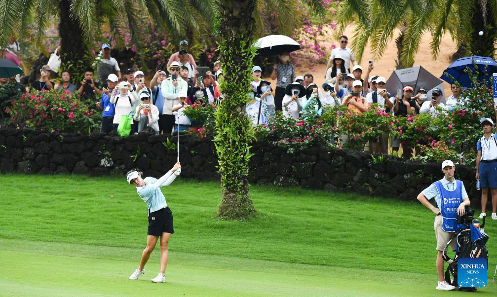Lydia Ko (L) of New Zealand plays a shot during the final round of the Blue Bay LPGA golf tournament in Lingshui, south China's Hainan Province, March 10, 2024. (Xinhua/Yang Guanyu)