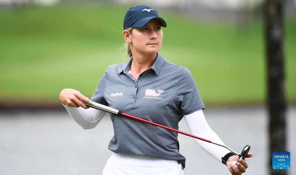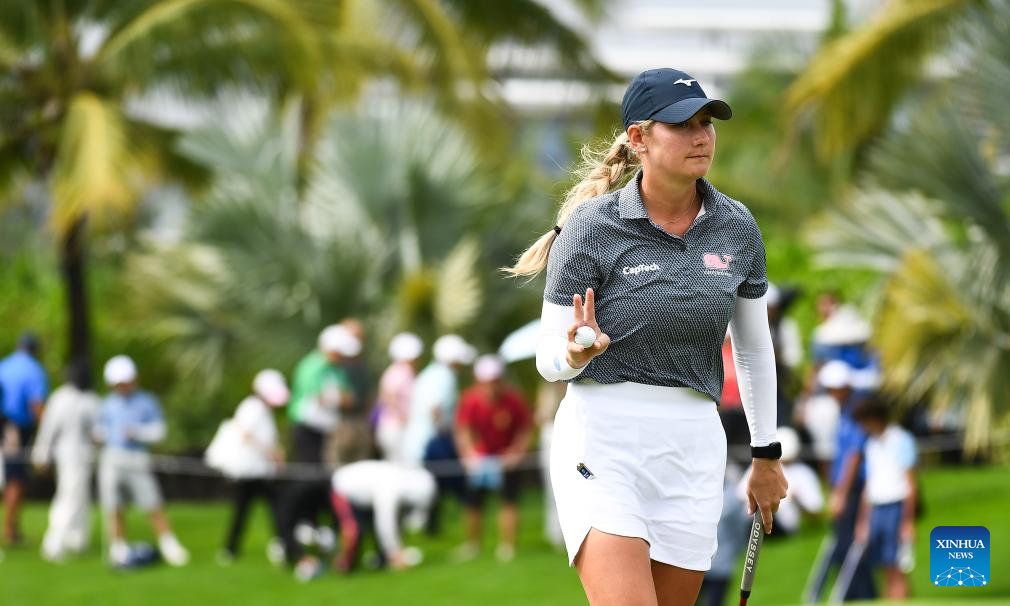 Sarah Schmelzel of the United States lines up a shot during the final round of the Blue Bay LPGA golf tournament in Lingshui, south China's Hainan Province, March 10, 2024. (Xinhua/Yang Guanyu)