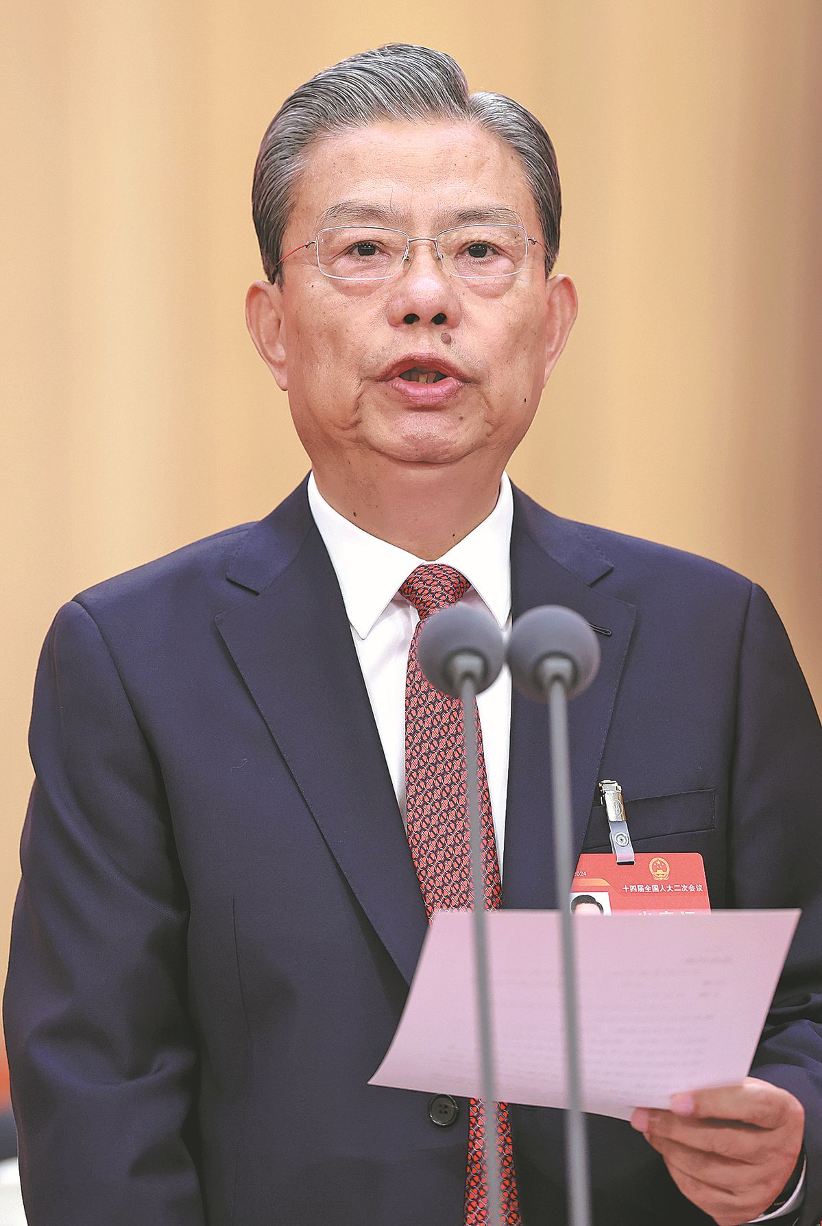 Zhao Leji, chairman of the National People's Congress Standing Committee, delivers a speech on Monday at the closing meeting of the second session of the 14th NPC in Beijing. FENG YONGBIN/CHINA DAILY