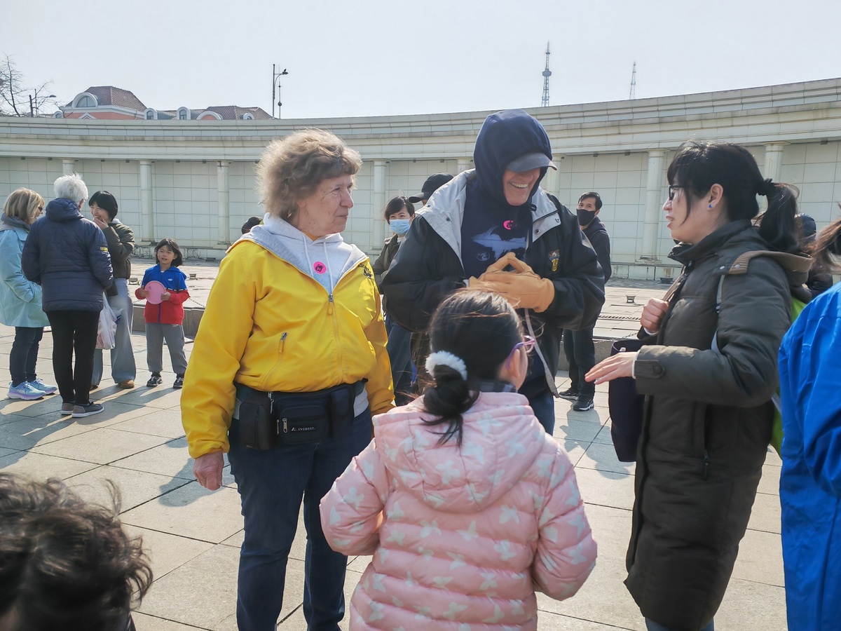 International tourists talk with locals in Dalian, Liaoning province, on Sunday. [Photo by Zhang Xiaomin/chinadaily.com.cn]
