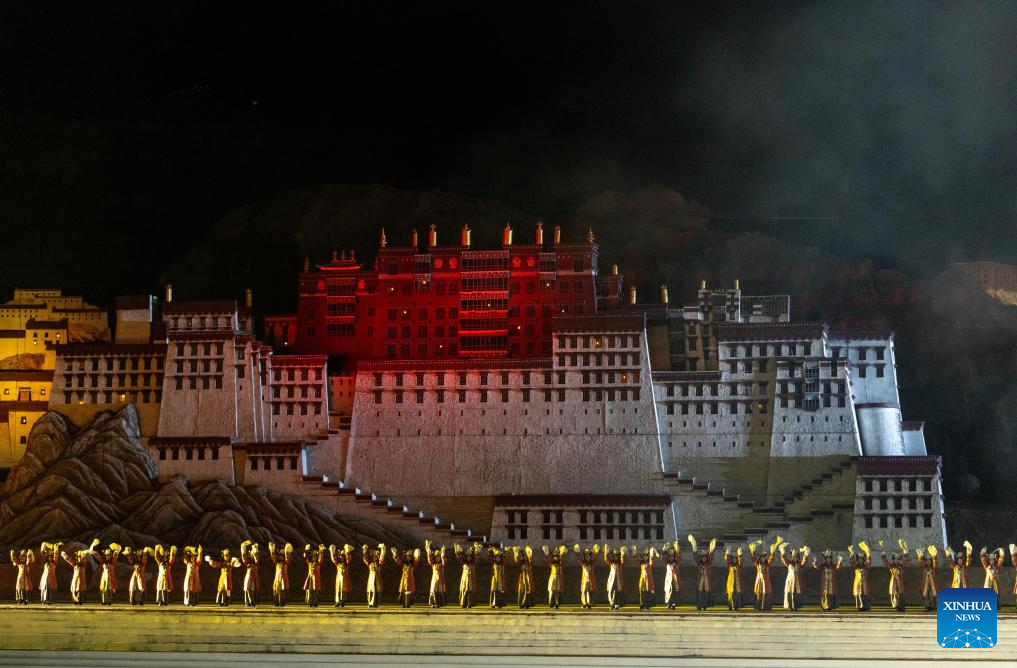 Artists perform in a new season of the historical opera "Princess Wencheng" in Lhasa, capital of southwest China's Xizang Autonomous Region, March 12, 2024. (Xinhua/Tenzing Nima Qadhup)
