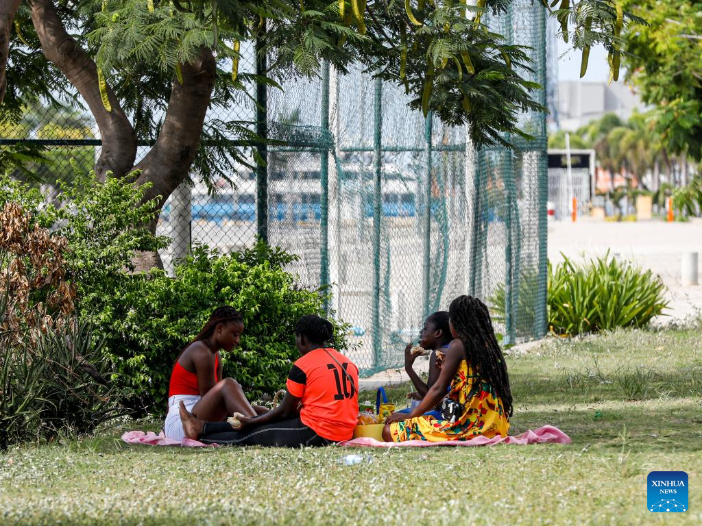 People picnic on the lawn in Luanda, capital of Angola, March 9, 2024. (Xinhua/Li Yahui)