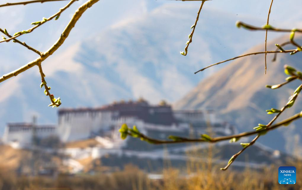 This photo taken on March 14, 2024 shows the spring scenery in Lhasa, southwest China's Xizang Autonomous Region. (Xinhua/Tenzin Nyida)