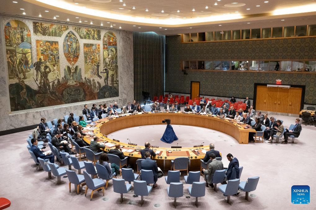 The Security Council holds a meeting on the situation in Yemen at the UN headquarters in New York, on March 14, 2024. United Nations (UN) Special Envoy for Yemen Hans Grundberg warned Thursday that the war in Gaza is narrowing the mediation space in Yemen and risks reversing the peace process. (Eskinder Debebe/UN Photo/Handout via Xinhua)