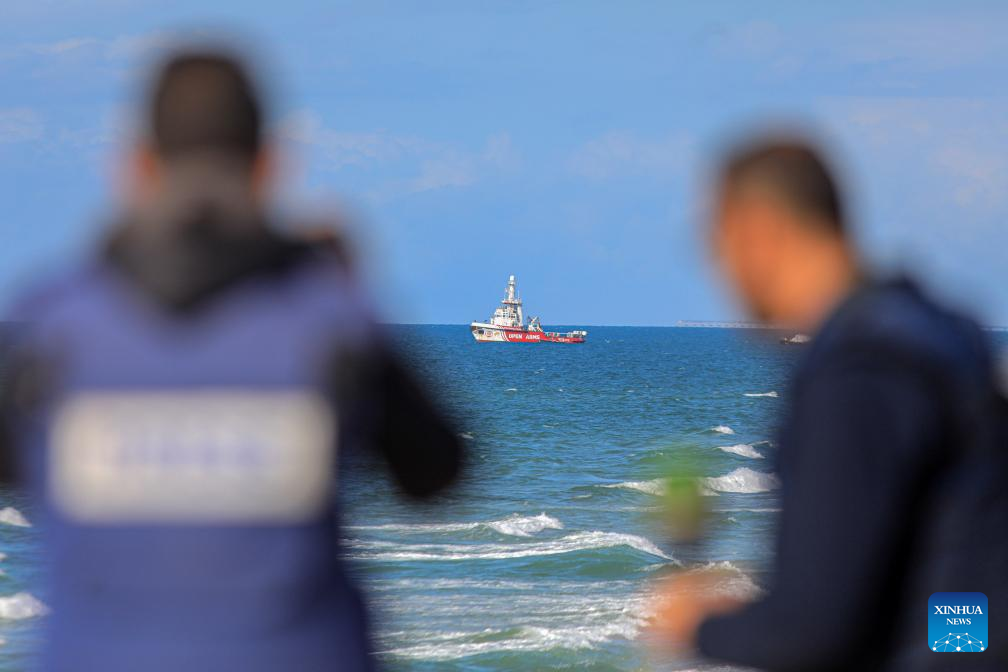 GAZA, March 15 (Xinhua) -- The first aid ship, traveling through the Cyprus-Gaza humanitarian maritime corridor, reached the coast of the Palestinian enclave on Friday and began offloading its cargo, Palestinian sources said.