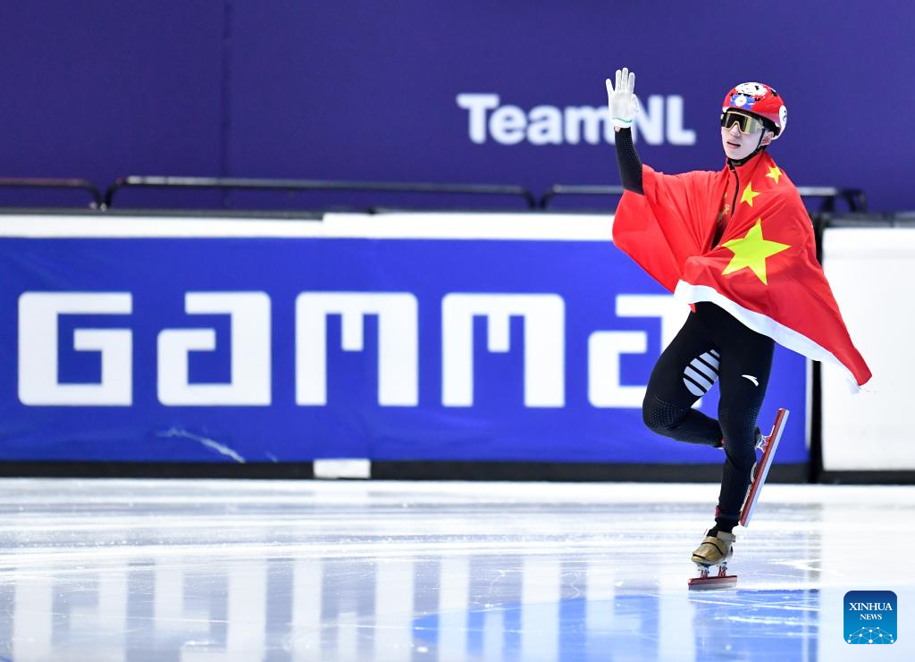 It was the second victory of the day for China, after Sun Long has topped the podium in the men's 1,500m, which marked China's 100th gold medal at the short track speed skating worlds.