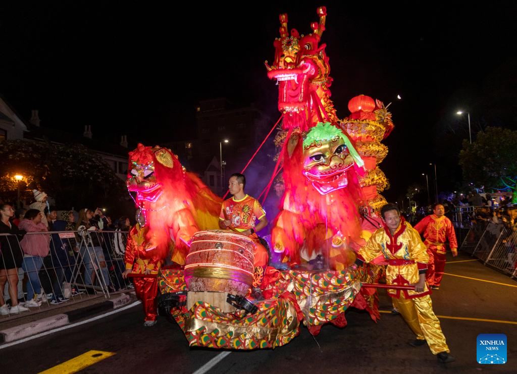Members of a Chinese performing group parade during Cape Town Carnival 2024 in Cape Town, South Africa, on March 16, 2024. The annual Cape Town Carnival kicked off in the legislative capital of South Africa on Saturday evening with Chinese elements featured at the event. (Xinhua/Wang Lei)