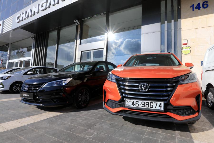 Chinese electric vehicles are seen in Amman, Jordan, on Feb. 9, 2024. Chinese electric vehicles (EVs) are swiftly gaining traction in Jordan's automotive market, propelled by their remarkable blend of high quality and affordability. (Photo by Mohammad Abu Ghosh/Xinhua)