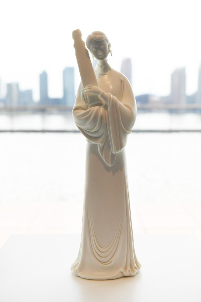 A Dehua porcelain artwork is presented at "Blanc de Chine - Dehua Porcelain" international exhibition in New York, the United States, on March 14, 2024. (Xinhua/Li Rui)