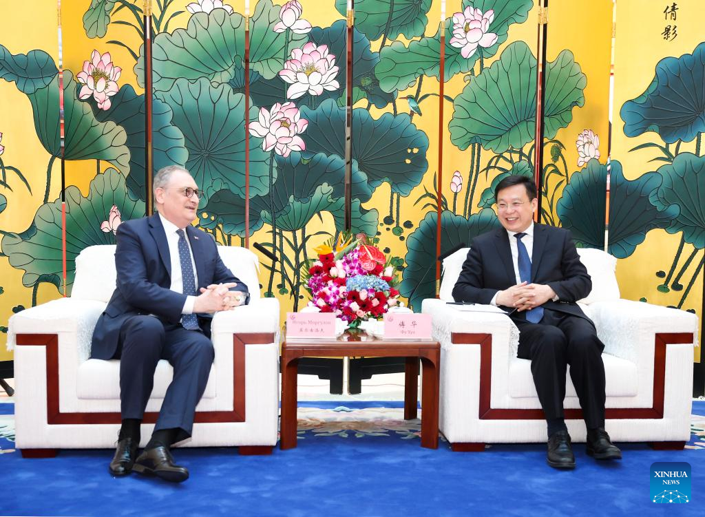 President of Xinhua News Agency Fu Hua meets with Russian Ambassador to China Igor Morgulov in Beijing, capital of China, March 19, 2024. (Xinhua/Huang Jingwen)